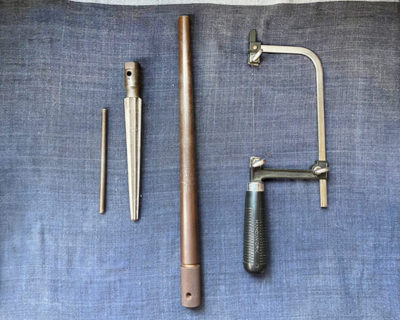 糸鋸フレームと通常ののこ刃は地金になってからも使用しますが、ワックス用ののこ刃は普通のノコギリの刃とは違い、ワックスがつまらないようにねじれたものになっています。